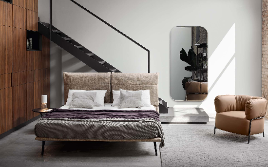 Dizajnirano da istakne staklo, ogledalo Bevel je nastalo iz proučavanja obrade bronzanog staklenog ogledala. Meki oblik je naglašen kosim ivicama, koje su ponekad prekinute, ističući njegove krivine. Igra refleksija i krivolinijskih oblika karakteriše elegantnu figuru. Dostupno je u kvadratnim ili pravougaonim veličinama i u dve varijacije boja. Pravougaoni model se može postaviti i vertikalno i horizontalno.