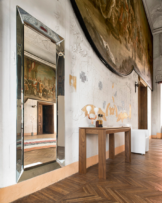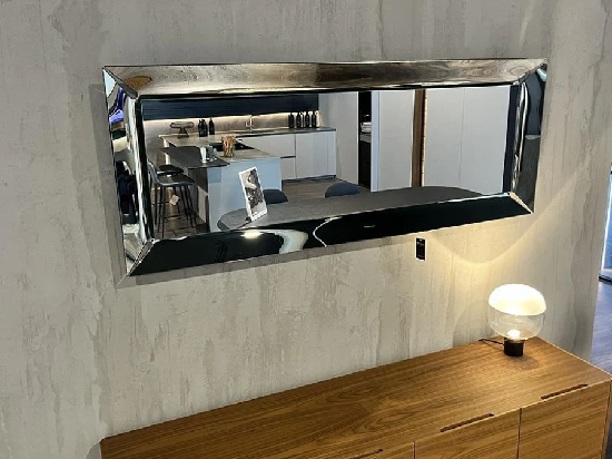Veliko pravougaono ogledalo modela PLEASURE. Za montažu na zid. Veliko pravougaono ogledalo koje se montira na zid vertikalno ili horizontalno, sa zakrivljenim i podignutim okvirom, dobijenim naprednom tehnologijom obrade stakla. Mnogo više od reflektujuće površine, PLEASURE je dodatak nameštaju velike estetske vrednosti i izraz inovacije u kombinaciji sa dizajnom. Izaberite ga da biste stvorili spektakularnu pozadinu u dnevnoj sobi ili spavaćoj sobi vašeg doma.