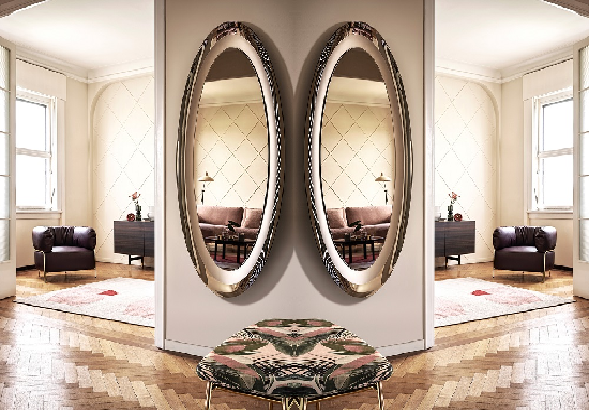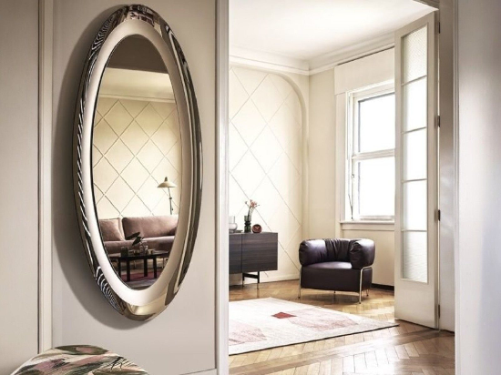 Ogledalo romantičnog stila sa razigranim linijama, sposobno da obogati svaki zid vašeg doma šarmom i praktičnošću. SURFACE karakteriše zakrivljeni okvir, spoljašnje ogledalo i unutrašnje satenska završna obrada. Može se okačiti na zid horizontalno ili vertikalno.