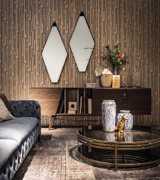 Dizajner se opredelio za romboidni dizajn kako bi odrazio diskretnu dragocenost i lepotu kontrastiranjem materijala poput somota i kože sa elementom dimljenog stakla.Samostalno, upareno ili čak kao niz od tri, Vanity Fair je fleksibilan u svojoj upotrebi i pristupu uređenju enterijera.