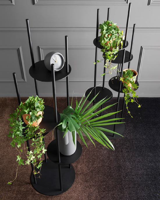 Polica za držanje predmeta u kružnom obliku na nekoliko nivoa. Napravljena u potpunosti od lakiranog metala. Ovaj dizajnerski komad daje novi pogled na dodatke za nameštaj. KRUGOVI su veoma originalan način da vaše najvažnije stvari držite na vidiku, a da ne zauzimate previše prostora. Ova stubasta polica od cevastog metala ima 4 kružne police od lima. Napravljene da se uklapaju sa stubom, kružne police su postavljene na različitim visinama, a cevaste šipke takođe dolaze u različitim visinama, stvarajući vizuelno upečatljiv aranžman.