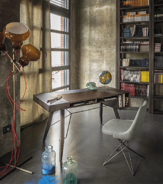Inkiostro kao takav, je pisaći sto koji razume i ceni zanat.Otvorene police i prostori za crtanje, moderan geometrijski dizajn, visokokvalitetni materijali i kožna podloga čine ovo ne samo prostorom za pisce, već prostorom koji teži da vidi svoje vizije oživljenim.