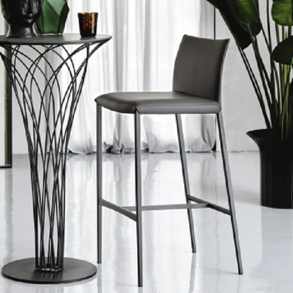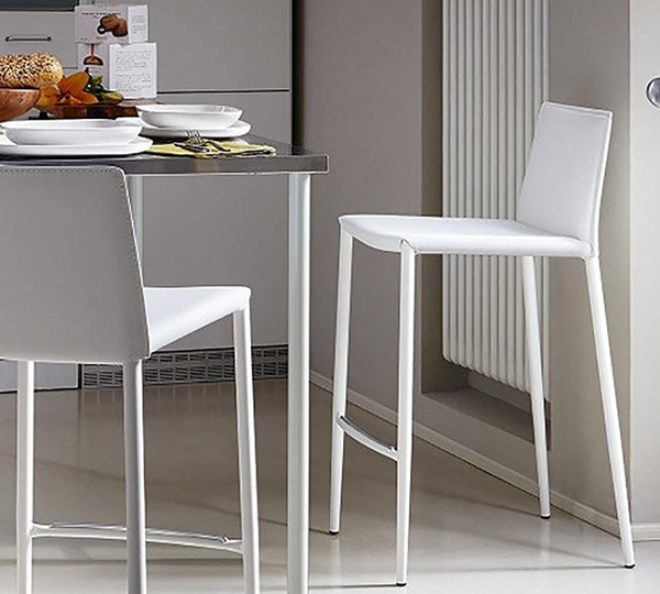 Aida barska stolica sa tapaciranim sedištem od regenerata kože. Sa svojim prefinjenim minimalizmom. AIDA barska stolica ima aerodinamičan dizajn. Tanke ali otporne noge, napravljene su od plastificiranog metala u istom finišu kao sedište.