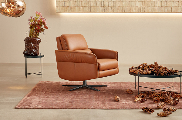 Fotelja za opuštanje sa integrisanim naslonom za noge i podesivim naslonom.Naslon za glavu sakriven pozadi i može se rasklopiti.Manuelna ili električna funkcija.2 vrste postolja: okretni stub od nerđajućeg čelika ili antracit.Jastuk za lumbalnu podršku.Rotirajući za 360°3 nivoa čvrstoće sedišta: superlastična meka, - med, - plus opružna jezgra.