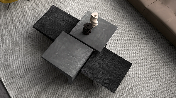 Stolovi su oblikovani od inovativnih, veoma izdržljivih jedinjenja: visoki sto od smole sa metalom u prahu i niski sto od smole sa glinom. Površinski tretmani ovih vrhunskih, ekološki prihvatljivih materijala primenjuju se ručno, dajući svakom stolu jedinstvenu teksturu. Za vaše živopisne dijaloge i revolucionarne razmene, Talking Heads nudi izuzetnu podršku.