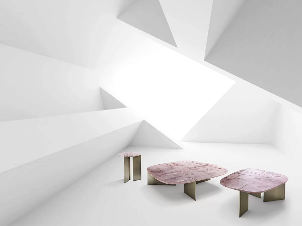Rumors klub sto se oslanja na umetnički osmišljene kontraste.Ovo je izuzetno sofisticirani komad nameštaja.Mermer je korišćen za ploče.Kosd svakog komada ,tri metalna sečiva obuhvataju ploču I presecaju je čistim,preciznim rezovima koji prekidaju šarenolike mermerne žilezakrivljene površine,stvarajući zadivljujuće kontraste između linija I površina.