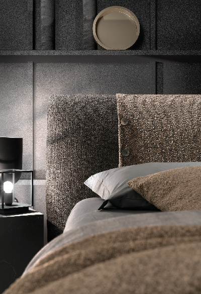 BUTTON je tapacirani krevet tradicionalnih i umirujućih oblika, idealan za one koji traže svestran i lako prilagodljiv krevet kako modernom tako i savremenom nameštaju, kao i elementima sa klasičnijim ili vintage prizvukom.Jednostavan, a istovremeno i intrigantan, krevet Button karakteriše platnena draperija sa bočnim dugmadima koja ukrašava centralni deo uzglavlja, mali detalj, ali sposoban da unese veliki karakter i ličnost u svaku spavaću sobu, zahvaljujući mogućnosti izrade sa završnom obradom ili kontrastnim materijalom u odnosu na glavnu presvlaku, koji se može izabrati iz širokog spektra vrsta tkanina ili eko kože, materijala dostupnih u brojnim nijansama, od svetlih i živih boja do neutralnijih i diskretnijih tonova!Krevet je dostupan sa ili bez prostora za odlaganje.