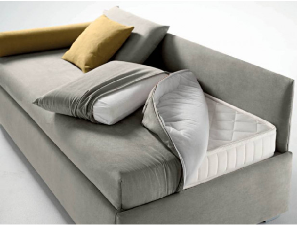 Tapacirani krevet sa prostorom za odlaganje, izuzetno svestranom zahvaljujući svojoj dvostrukoj upotrebi: zahvaljujući mogućnosti uključivanja posebnog niskog dušeka Sit & Sleep sa presvlakom, može se koristiti kao udobna sofa kada se ne koristi kao krevet. Krevet je dizajniran za dušeke širine 80, 90 ili 120 centimetara i dužine 190 ili 200 centimetara, a letvičasta podloga je uključena. Dušek kreveta može biti uključen sa presvlakom od istog materijala i boje kao i ostatak kreveta.Podloga kreveta, sa drvenim letvicama, opremljena je standardnim mehanizmom za podizanje napred koji omogućava pristup odeljku za odlaganje ispod.Dostupan sa naslonom visine 71 ili 86 cm .Jastuci nisu uključeni, ni pravougaoni ni cilindrični.Izaberite presvlaku iz širokog spektra tkanina i eko kože; kontaktirajte nas ako ne pronađete željenu prilagođavanje u konfiguraciji.