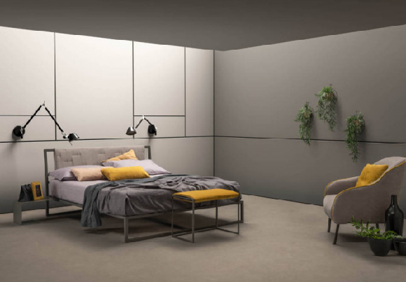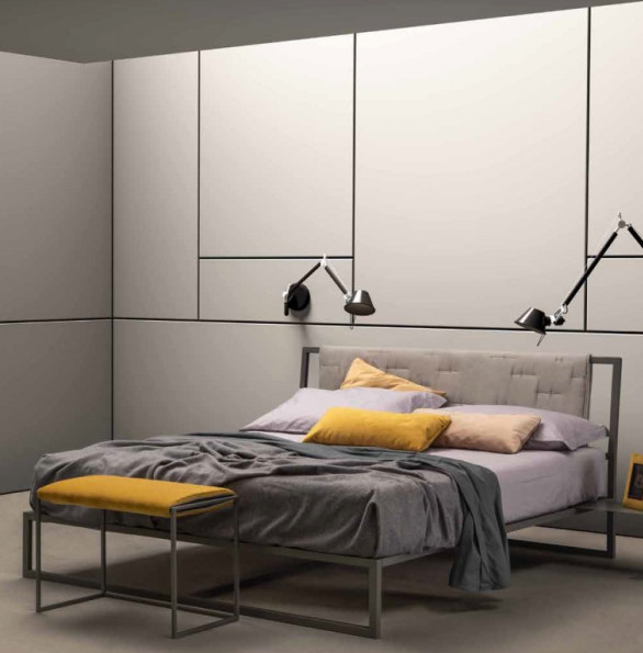 FRAME, METALNI KREVET SA TAPACIRANIM UZGLAVLJEM. Dajte boju i ličnost svojoj spavaćoj sobi zahvaljujući Frame krevetu, izaberite boju konstrukcije i kombinujte potpuno prilagođeno tapacirano uzglavlje. Možete napraviti dve strane sa različitim tkaninama i obradama tako da ih možete obrnuti u bilo kom trenutku i kreirati konfiguraciju koju želite.