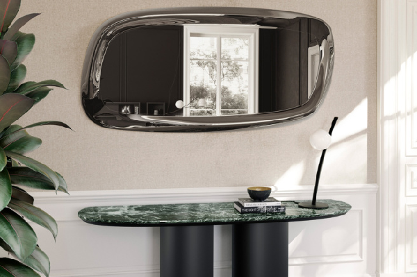 Astrum je dizajnersko zidno ogledalo jedinstvenog i definisanog oblika, savršeno rešenje za uređenje ulaznih ili zajedničkih prostora. Ogledalo Astrum je deo kolekcije ogledala sa staklenim ramom, koji je kovan pomoću toplote. Posebna karakteristika ovog elementa nameštaja je posebna izrada koja omogućava oblikovanje staklene ploče, stvarajući dva reljefna elementa.