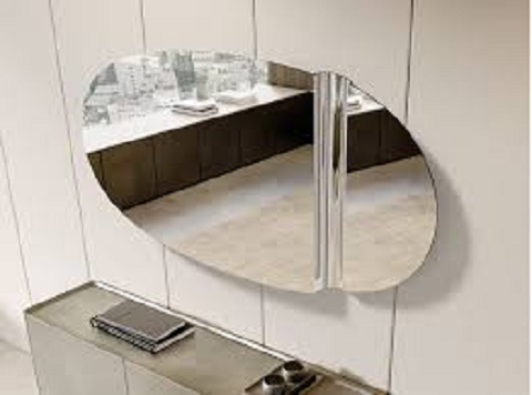 Jedinstvenost ovog dizajnerskog elementa potiče od tri površine koje se kompaktno smenjuju u scenskom i funkcionalnom nizu. Zaista, LET ogledalo prenosi trodimenzionalnost reprodukovanih figura, prateći frontalno odraženu sliku bočnim pogledom.