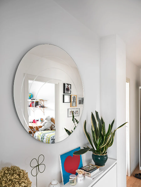 Okruglo ogledalo LUNE sa dekoracijom koncentričnih krugova. Montira se na zid. LUNE je veliko, okruglo ogledalo sa dimljenom osnovom, ukrašeno uzorkom koncentričnih krugova različitih veličina ugraviranih na površini. Dinamično, emotivno i sa snažnim estetskim uticajem, savršeno je za osvetljavanje ulaza, dnevnog boravka ili spavaće sobe svojim odsjajima.