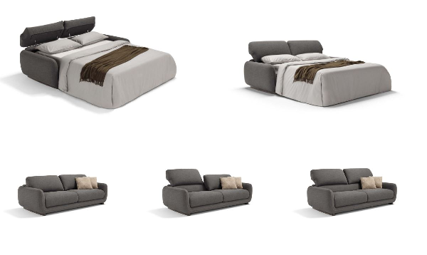 Sofa na razvlačenje sa kliznim naslonima koji nudi dve različite visine naslona i dve različite dubine sedišta. Mehanizam: standardni elektrozavareni