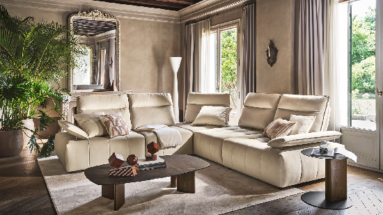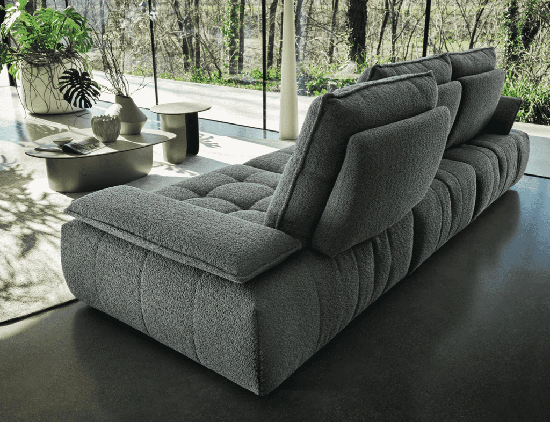 Sofa Equipe je modularnog tipa. Rukonaslon i naslon za leđa se pomeraju,tako da se dobija dnevni krevet. Veliki izbor materijala i boja.