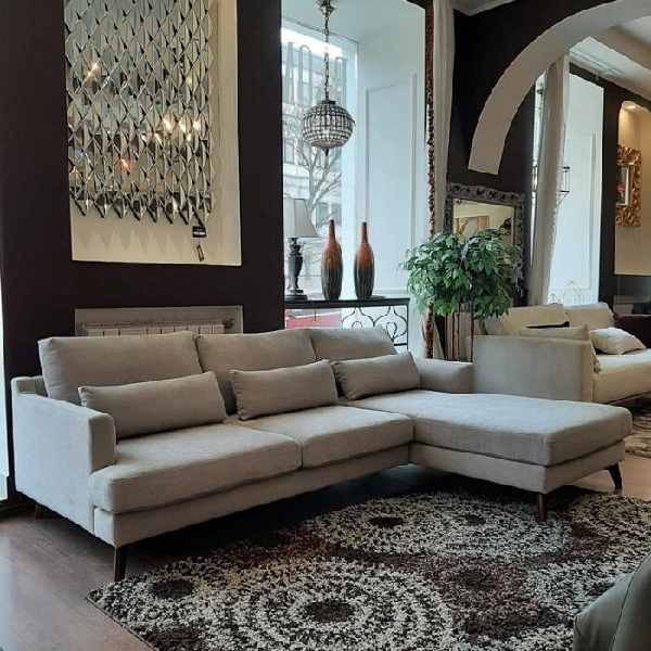 Sofa Saga je modularna. Ima dublji okvir.Klasićnog je izgleda,a zahvaljujući visokim nogama odiše elegancijom. Uklapa se i uz klasičan i uz moderan nameštaj.
