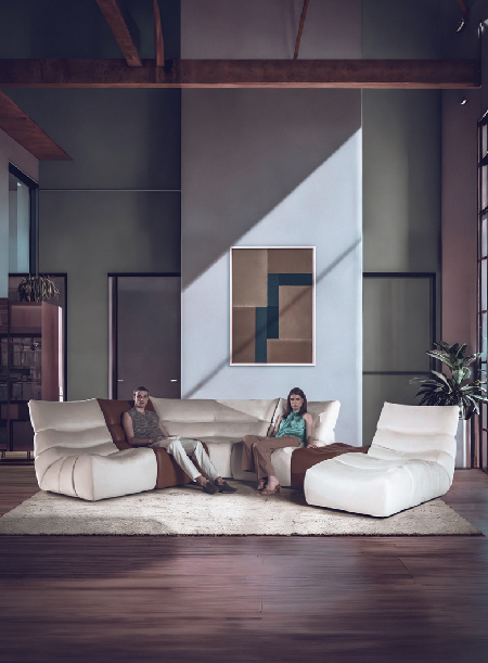 Dostupna u koži, tkanini ili mikrofiberu, Trap je modularna sofa sa savremenim stilom, koja se ističe svojim kompaktnim zapreminama i visokim, udobnim naslonima.Trakasti dizajn, koji kao da je obuhvata, daje mekan i privlačan šarm, privlači pogled i poziva vas da utonete u čisto opuštanje.Naslon za glavu uključuje ručni mehanizam integrisan u naslon, što mu omogućava da se nagne napred za veću udobnost.