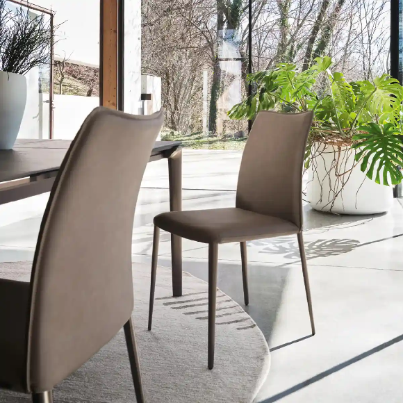 Dinamične linije, fleksibilan naslon i sedište sa elastičnim oprugama, Fay je trpezarijska stolica koja se može prilagoditi čak i najudobnijim položajima sedenja. Konusne metalne noge joj daju vitak profil, što je čini pogodnom za elegantno upotpunjavanje većih stolova.