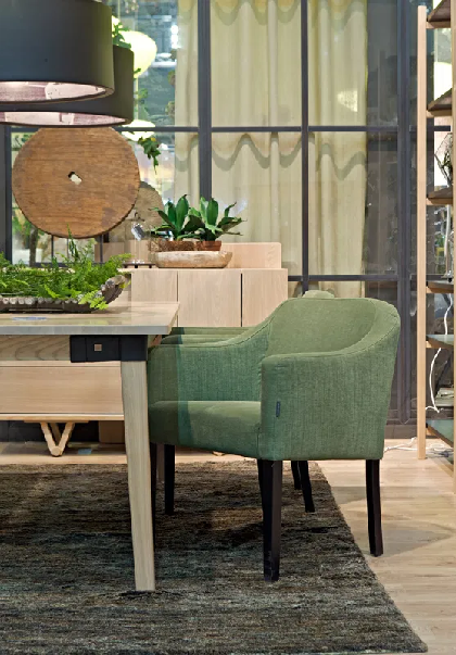 Trpezarijska stolica Paloma je savremeni i lagani razvoj sofe Paloma. Elegantna krivina spaja naslon za ruke i naslon Palome, stvarajući siluetu modernog klasika. Trpezarijska stolica Paloma dolazi u različitim izborima tapacirunga i može se naručiti sa metalnim ili drvenim nogama.