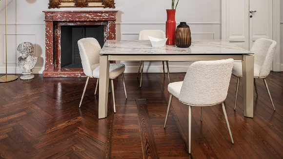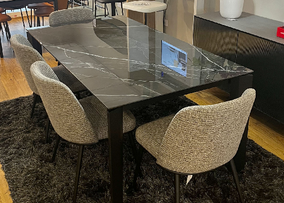 Delta sto sa mehanizmom.Metalne noge sa gornjom pločom od stakla,drveta ili keramike.Noge su uvek na uglovima stola i nude maksimalnu udobnost za sve goste.