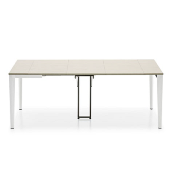 Jedna od karakteristika ovog konzolnog stola je njegova sklopiva centralna noga, dizajnirana da obezbedi stabilnost kada je sto potpuno produžen. Ovaj genijalni detalj obezbeđuje bezbednu i pouzdanu površinu za rad ili zabavu.