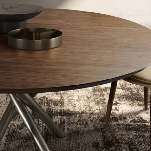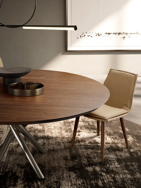 Bali sa drvenom pločom je savršen moderan trpezarijski sto za opremanje dnevnog boravka vašeg doma. Prepoznatljivi dizajn Ollen Pal-a definiše ovaj dodatak za opremanje sa karakterističnom farbanom metalnom osnovom i okruglom, pravougaonom ili oblikovanom pločom od furniranog drveta, sa kosim ivicama debljine 38 mm. Posebnost drvenog trpezarijskog stola Bali je lako prepoznatljiva u osnovi: magično preplitanje konusnih nogu koje ga čini komadom nameštaja sa laganim i elegantnim dizajnom. Ovaj originalni okrugli drveni sto je takođe dostupan u pravougaonoj verziji i nalazi svoju idealnu lokaciju u kontekstu savremenog stila, u kombinaciji na primer sa stolicama Lara sa drvenim nogama. Takođe dostupan sa keramičkim, mermernim i kristalnim vrhom.