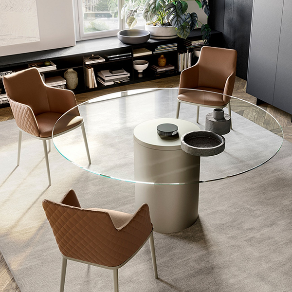 Cilindar sa staklenim vrhom je dizajnerski sto koji se lako uklapa u okruženja savremenog stila. Ovaj okrugli dizajnerski sto dobio je ime po svom karakterističnom elementu: cilindričnoj osnovi od metala i ofarbanoj u jednu ili dve boje, što dodatak za nameštaj čini jedinstvenim i posebnim. Pored zanimljive cilindrične osnove, Cilindro sa kristalnim vrhom definisan je okruglim, pravougaonim ili oblikovanim vrhom od kaljenog stakla, farbanim u sjajno crno, debljine 12 mm
