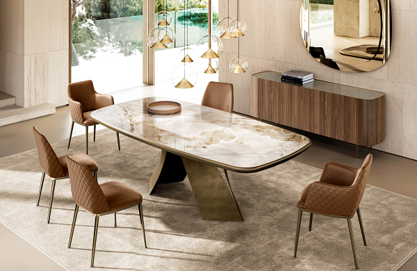 Twist je dizajnerski sto koji se uklapa među najposebnije modele modernog nameštaja. Idealan za savremenu dnevnu sobu, Twist karakteriše transformativna baza, sastavljena od dve obojene metalne noge koje se otvaraju iz centra u vrtlogu linija i elegancije. Noge, koje se ističu svojom naizgled laganom, ali čvrstom i odlučnom strukturom, podržavaju mermerni vrh debljine 2 cm.