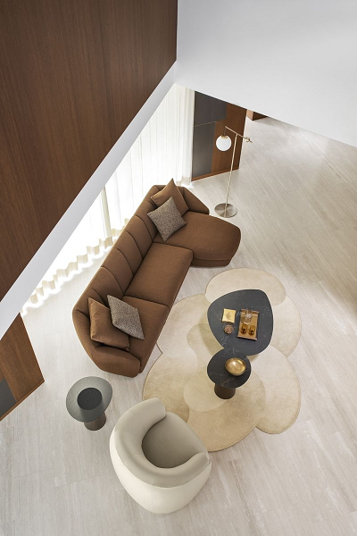 Zakrivljeni tepih marke Calligaris dostupan je samo u jednoj veličini. Zakrivljeni tepih je napravljen od poliamida sa dugim vlaknima, bež tonovima i visokotehnološkom digitalnom štampom. Vatrootporan materijal. Dizajner: